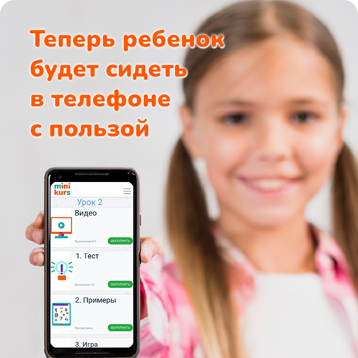 Ребенок в любое время и любом месте самостоятельно без помощи взрослых проходит курс на любом устройстве (компьютер, планшет, телефон)